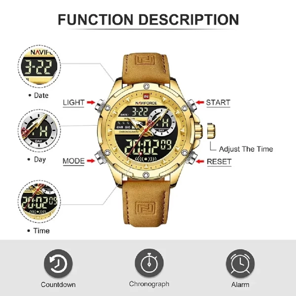 • Feature: Shock Resistant,Luminous,Chronograph,Complete Calendar,Water Resistant,Alarm,Week Display,luminous hands